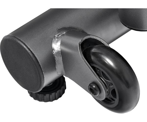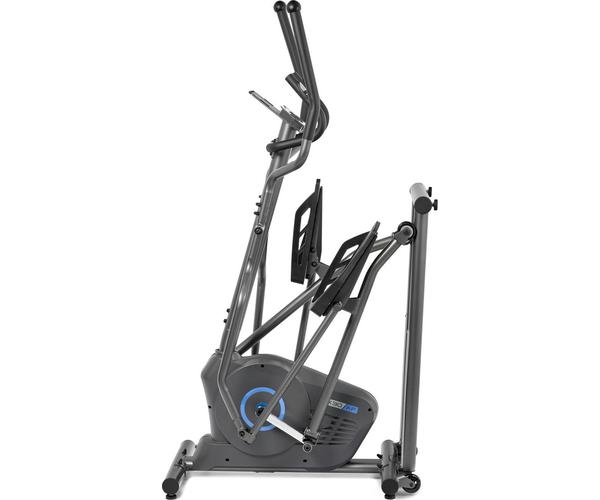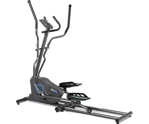 Тренировочный компьютер представлен черно-белым LCD-дисплеем с удобной подставкой под смартфон или планшет. На экран выводятся все основные параметры тренировки – программный профиль, время, дистанция, скорость, калории, уровни нагрузки, обороты в мин. и пульс. 12 предустановленных программ рассчитаны на тренировку скоростных качеств, выносливости, укрепления сердечно-сосудистой системы и похудания. Нагрузка регулируется электронным способом через консольные клавиши в 16 положениях. Измерение пульса происходит путем удержания ладоней на сенсорных датчиках пульса, расположенных на поручнях. К числу дополнительных характеристик эллипсоида относятся такие опции как транспортировочные ролики и компенсаторы неровностей пола. Переместить изделие из одного места в другое не составит большого труда, а компенсаторы позволят отрегулировать положение ножек на неровной поверхности.