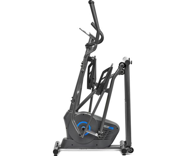 Тренировочный компьютер представлен черно-белым LCD-дисплеем с удобной подставкой под смартфон или планшет. На экран выводятся все основные параметры тренировки - время, дистанция, скорость, калории, обороты в мин. и пульс. Измерение пульса происходит путем удержания ладоней на сенсорных датчиках пульса, расположенных на поручнях. Нагрузка регулируется механическим путем в 8 положениях. К числу дополнительных характеристик эллипсоида относятся такие опции как транспортировочные ролики и компенсаторы неровностей пола. Переместить изделие из одного места в другое не составит большого труда, а компенсаторы позволят отрегулировать положение ножек на неровной поверхности.