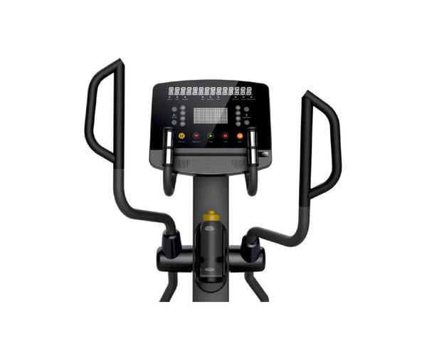 Консоль имеет интуитивно понятный интерфейс, а управлять нагрузкой и контролировать пульс, можно не отрывая рук от рукояток благодаря хорошо зарекомендовавшую себя технологии. На матричном дисплее выводится необходимые параметры тренировки: дистанция, скорость, время, потраченные калории, уровень нагрузки и сердечный ритм . Мягкие, широкие педали в сочетании с большой длиной шага позволяют почувствовать естественный комфорт во время тренировки.