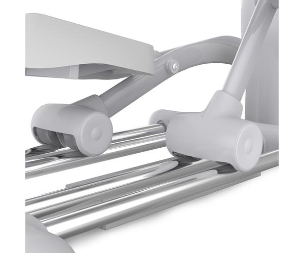 Тренажер с ручной регулировкой рамы в 3 положениях оборудован эргономичными поручнями с датчиками пульса и противоскользящими широкими педалями с мягкими вставками, и оптимальной длиной шага 52 см, которые обеспечивают удобную и безопасную тренировку. Это позволяет задействовать большое количество мышечных групп - от бедер до ягодиц. Эллиптический тренажер может выдержать человека весом до 150 килограммов.