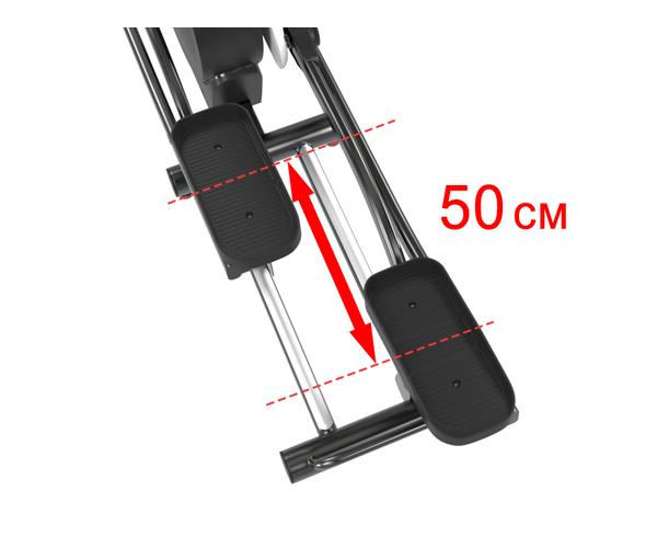 Модель MV-500E представляет собой электромагнитный эргометр. Маховик с инерционным весом 24 килограмма, внушительный диапазон электронных регулировок нагрузки, а так же 20 программ тренировок, в том числе 4 пульсозависимые и ручные программы. Длина шага тренажера составляет 50 сантиметра.