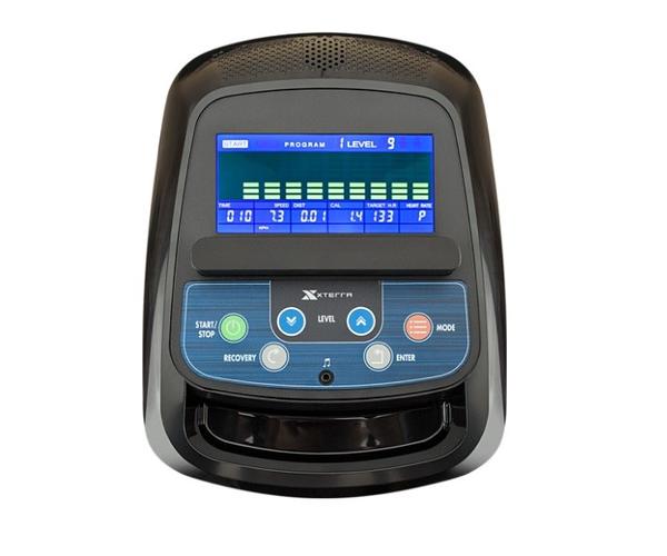 XTERRA Fitness SE210 - качественный тренажер для домашнего использования. Рама тренажера рассчитана на пользователей с весом до 120 кг. Тренажер имеет 24 уровня сопротивления с электронной регулировкой. Тренировочный пакет включает в себя 23 программы, среди которых 4 пользовательских. Контроль за пульсом осуществляется при помощи сенсорных датчиков, расположенных на поручнях и есть возможность использовать беспроводной кардиопояс (опция). Длина шага 41 см. За плавность хода отвечает 10-кг маховик.