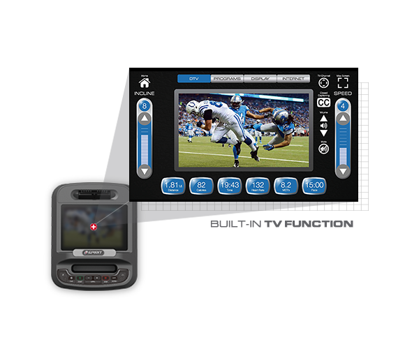 Ёмкостный TFT – дисплей высокого разрешения с диагональю 10,1» дюймов с богатым программным обеспечением выведут тренировки на новый уровень. Встроенный TV – тюнер, с ним Вы можете смотреть свои любимые телепередачи и фильмы, регулировать громкость, переключать каналы, что сделает ваши тренировки более приятными, чем когда-либо.