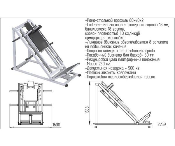 • Габариты тренажера (ДхШхВ) - 2240*1600*1660мм ;