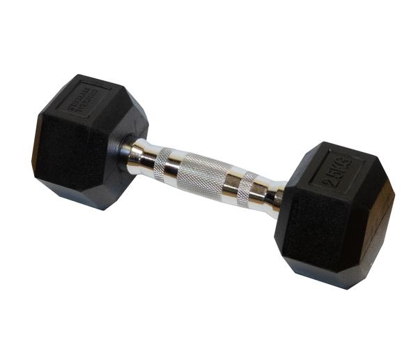Гантель гексагональная обрезиненная с хромированной рукояткой Original FitTools весом 2,5 кг.