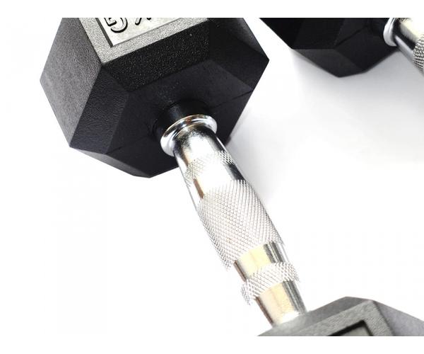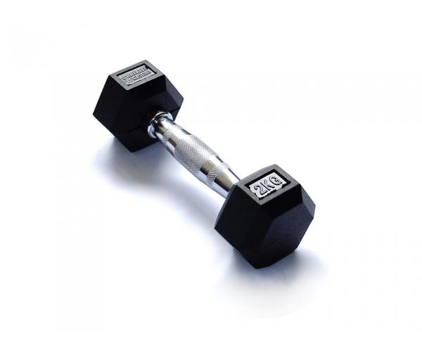 Гантель гексагональная обрезиненная с хромированной рукояткой Original FitTools весом 2 кг.