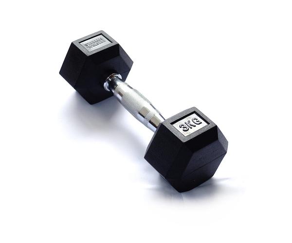 Гантель гексагональная обрезиненная с хромированной рукояткой Original FitTools весом 3 кг.