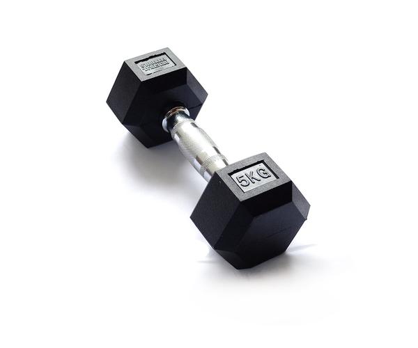 Гантель гексагональная обрезиненная с хромированной рукояткой Original FitTools весом 5 кг.