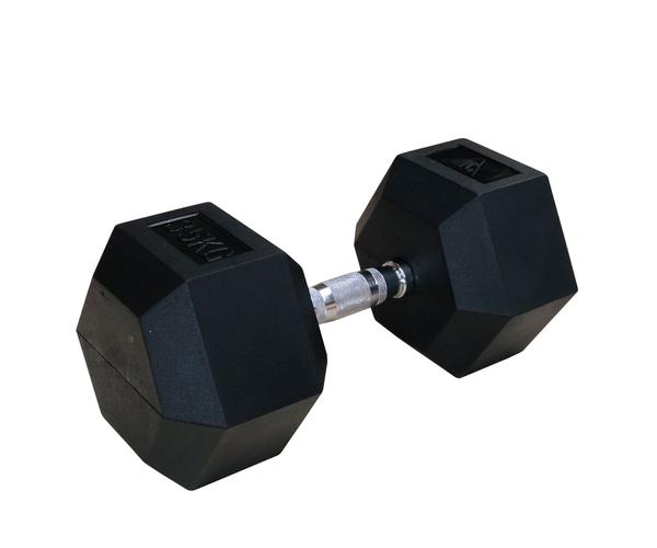 Гантель обрезиненная с хромированной ручкой. Ручка имеет насечки в средней части для предотвращения скольжения рук во время занятий. Гантели продаются комплектом из 2 штук (пара). Гексагональная гантель имеет много граней и не катиться по полу.