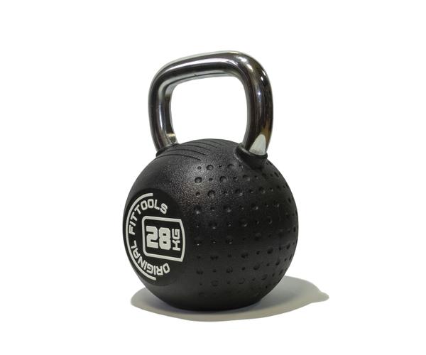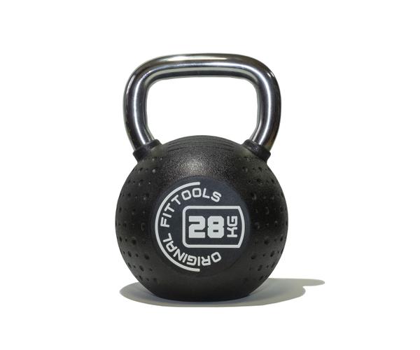 Премиальная гиря OriginalFitTools 28 кг с хромированной ручкой и высококачественным полиуретановым покрытием.