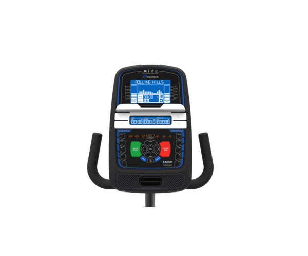 Сидение тренажера имеет вентилируемую конструкцию и оборудовано рельсовой системой регулировки по высоте и расстоянию от педалей. Число предустановленных программ: 29 (9 встроенных профилей, 8 программ контроля частоты сердечных сокращений, 2 пользовательских профиля, 2 фитнес-теста, быстрый старт). Консоль в режиме реального времени отражает такую информацию о тренировке, как продолжительность занятий, дистанция, скорость, количество сожженных калорий и многое другое. Эти данные можно экспортировать в сервисы Nautilus Connect и MyFitnessPal через Bluetooth. Дисплей: сдвоенный ЖК-дисплей DualTrack с яркой синей подсветкой.
