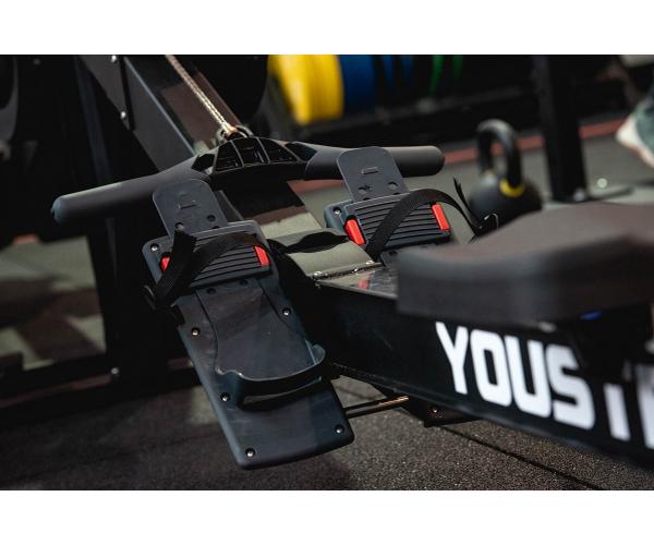 Гребной тренажер Yousteel Air Rower в отличии от аналогов имеет более мягкое сидение и уникальную систему крепления ног.