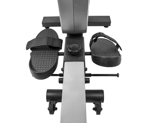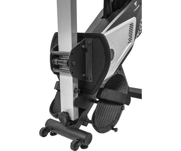 Гребной тренажер TITANIUM SF 0474 со встроенными транспортировочными роликами быстро складывается — его удобно двигать и хранить.