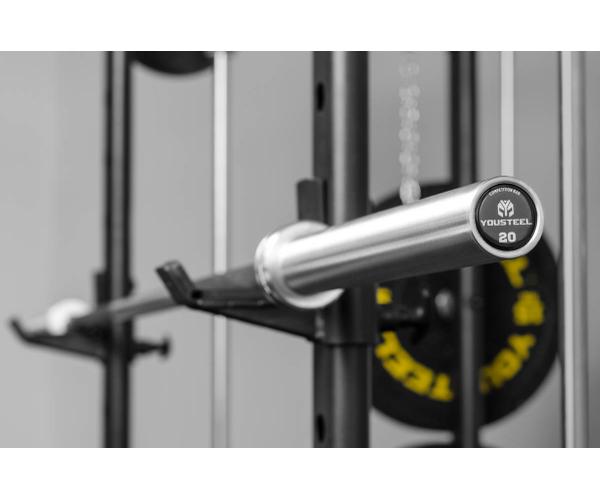 Мы взяли гриф для тяжёлой атлетики и адаптировали его для функционального тренинга. Получился универсальный гриф, отвечающий стандартам соревновательного оборудования