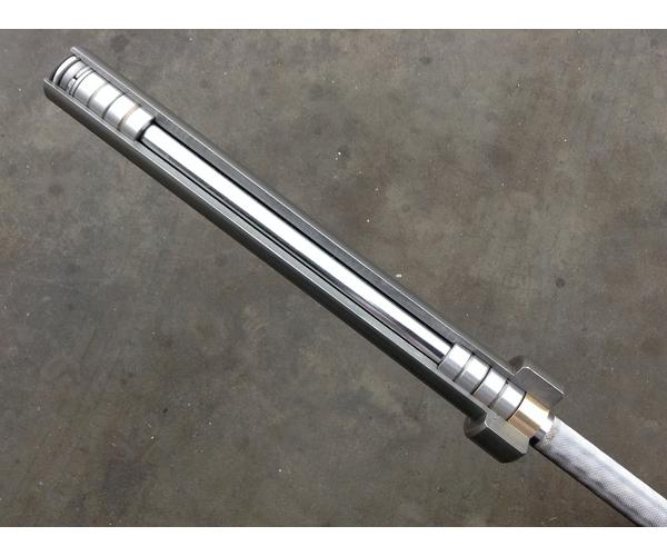 Характерной особенностью грифа “Ленинградка» является уникальная система рукавов с канавками и специальных замков, что позволяет не затягивать данное крепление между каждым тяжелым подходом. Замок крепится специальным рычажком на канавке, а не с помощью компрессии создаваемым рычагом, как на классических олимпийских замках.