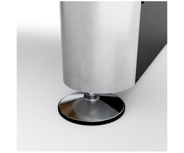 Этот стол изготовлен из высококачественных и прочных материалов, таких как нержавеющая сталь и МДФ с хромированными уголками. Его современный дизайн выполнен в элегантном серебристо-чёрном цвете.