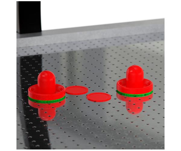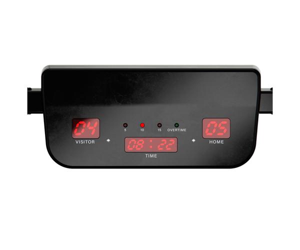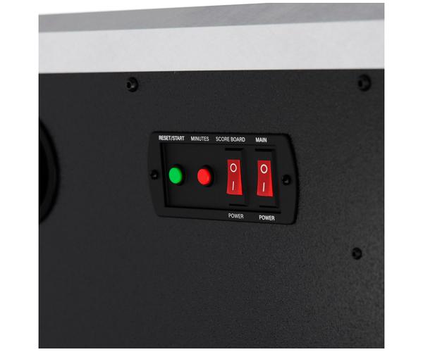 Кроме того, в комплекте со столом вы найдете четыре красных биты 96 мм и четыре красных шайбы 63 мм для незабываемой игры. Счётчик располагается дугой над игровым полем на высоте 54 см по нижнему краю и 66 см по верхнему, благодаря чему, игроки могут следить за счётом, не отрываясь от игры. Он работает на трех батарейках типа ААА, не входят в комплект.