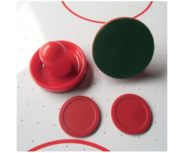 Корпус выполнен из специально обработанного МДФ, сверху покрытого прочным пластиком. Мощный компрессор подает воздух через 2000 отверстий. Игровое поле с необходимой для игры разметкой выполнено из прочного ЛДСП. Усиленная конструкция стола обеспечит высокую надежность даже при больших нагрузках. Оборудован электронным счетчиком очков.