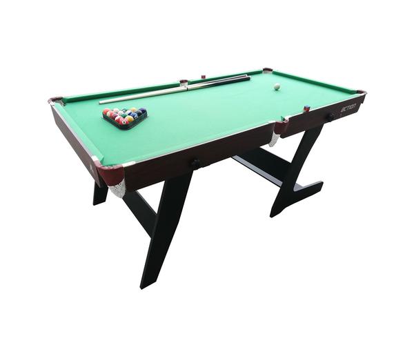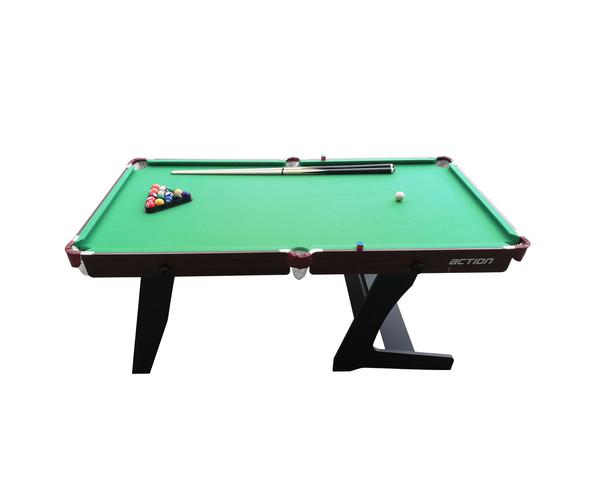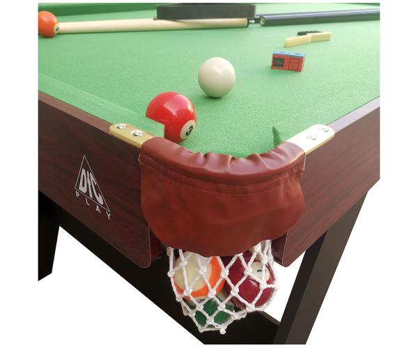 Домашний стол DFC ACTION для игры в пул. Размер стола 6 футов. Складная конструкция стола позволяет при необходимости экономить место для хранения до следующей игры. Корпус выполнен из специально обработанного МДФ, сверху покрытого ПВХ-пленкой. Игровое поле выполнено из бархата, лузы из стали.