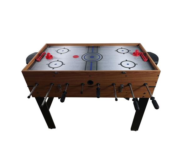 Стол - трансформер 3 игры в 1: бильярд / хоккей / соккер. Для выбора нужной игры необходимо установить новую игровую поверхность на основу стола. Корпуса столов выполнены из специально обработанного МДФ, сверху покрытого ПВХ-ламинатом.