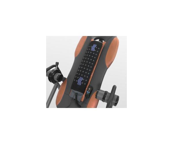 Рукоятка регулировки угла наклона фиксирует крайнее положение наклона тела в диапазоне от 5 градусов (горизонтальное положение с небольшим уклоном в сторону головы) до 90 (тело с головой вертикально вниз) с промежуточными положениями 25, 50 и 75 градусов. Oxygen Healthy Spine Deluxe имеет уникальную дополнительную опцию в виде массажера спины с функцией прогрева (входит в комплект), он обеспечивает массаж всего позвоночника, имеет 2 режима и 3 уровня интенсивности. Управление прогревом, массажем происходит за счет дистанционного пульта управления. Массаж и прогрев спины значительно усиливают общий эффект от упражнений на инверсионном столе. Oxygen Healthy Spine Deluxe быстро складывается и в сложенном виде занимает совсем немного места. Важным элементом конструкции является надежный фиксатор для ног. Рост пользователя - от 147 до 198 см. Максимально допустимый вес пользователя - 150 кг.