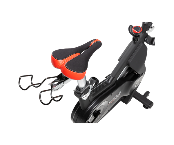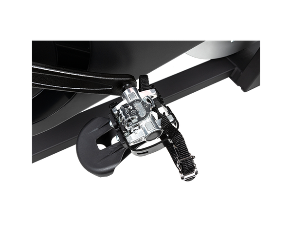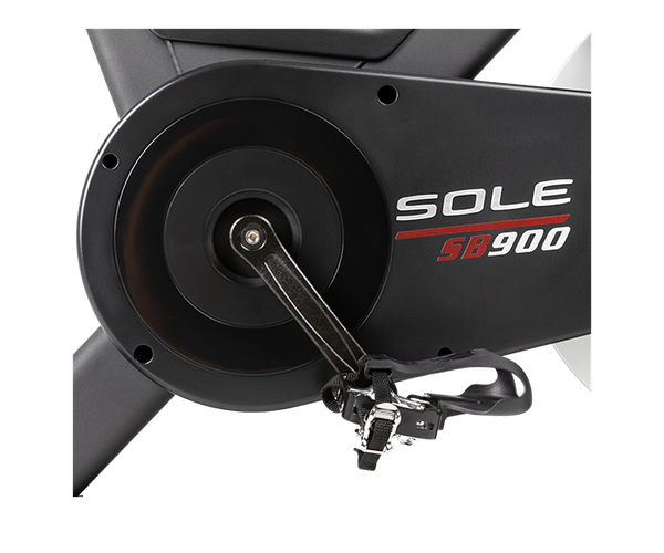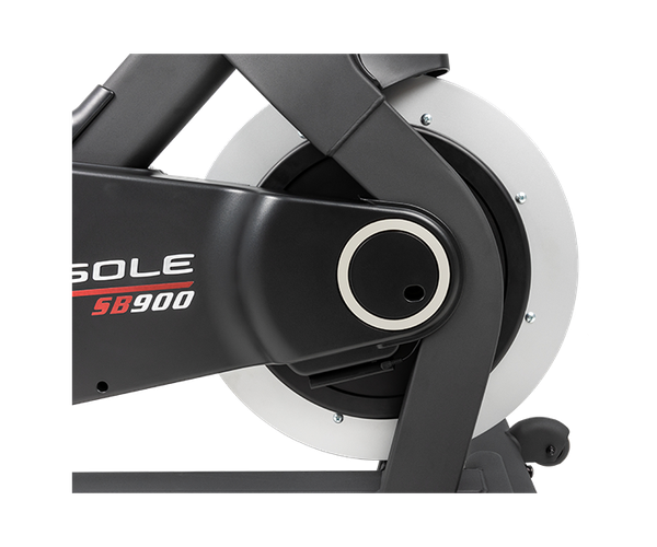 SB900 оснащен регулируемым сиденьем и рулем, которые регулируются по горизонтали и вертикали. Тренажер может быть оснащен как классическими педалями с клипсой, так и вариантом SPD педалей (фиксация без клипсы). Прочный хромированный маховик весом 16 кг и конструкцией магнитного торможения обеспечат бесшумную и плавную езду.