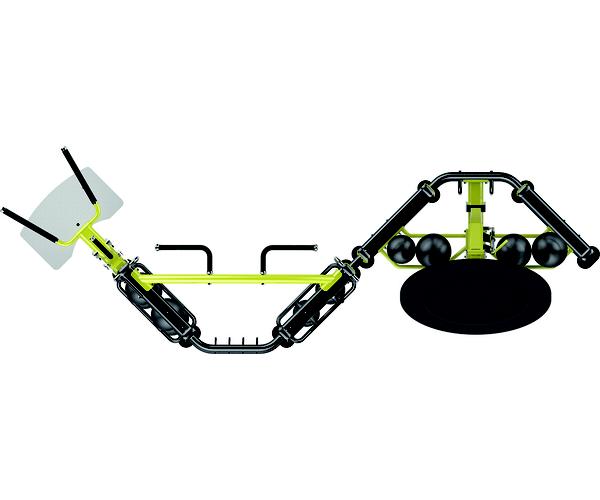 Комплекс из 2х модулей в форме буквы "S", состоит из: зоны растяжки и зоны реакции, соединенных между собой S-образным соединением, включающий плио платформу, опору для отжиманий (брусья) и шарнирный крепеж для грифа.