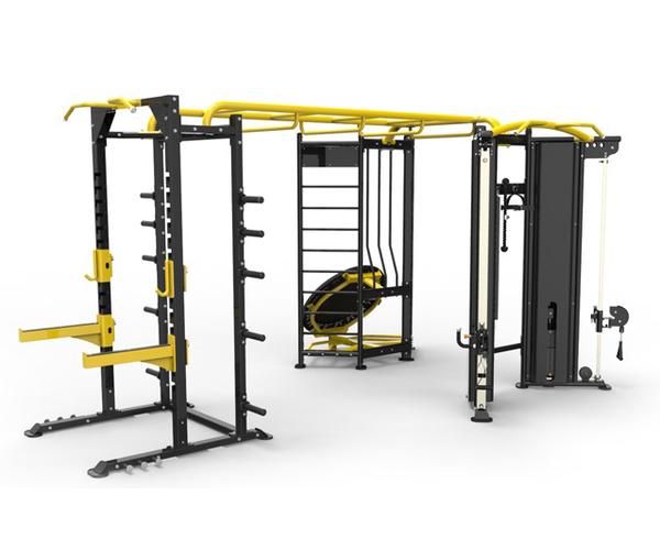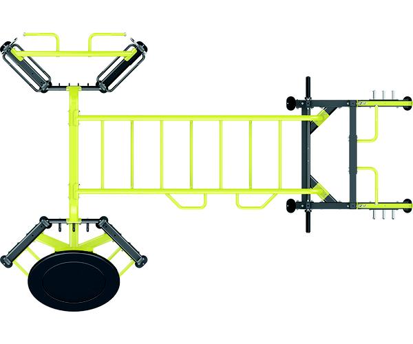 Комплекс из 3х модулей в форме буквы "T", состоит из: зоны реакции, зоны силовой нагрузки (силовой рамы) и двойной регулируемой тяги, соединенных между собой посредством «рукохода» и специальной перекладины, включающий плио платформу, опору для отжиманий (брусья) и шарнирный крепеж для грифа.