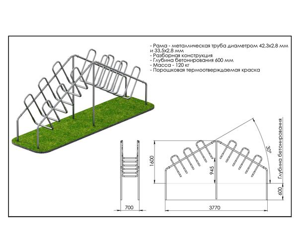 • Рама выполнена из металлической трубы диаметром 42,3х2,8 мм и 33,5х2,8 мм