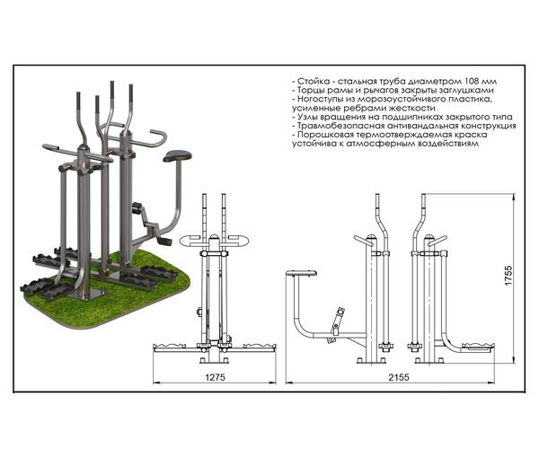 Лыжник+Велосипед+Разведение ног ARMS044.1 предназначен как для одного пользователя, так и для двух и трех одновременно.