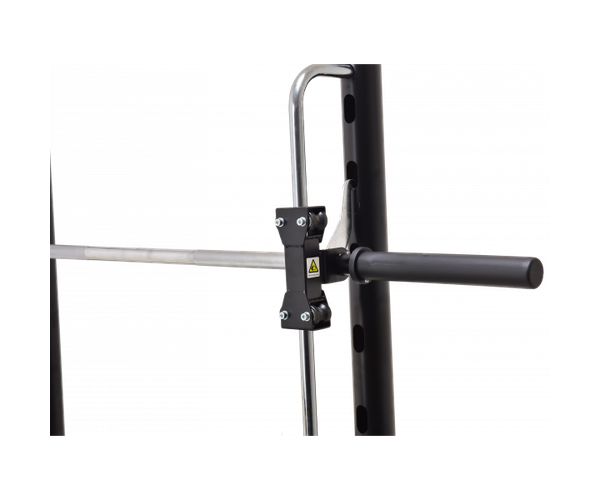 Направляющие машины Смита обеспечивают плавное контролируемое скольжение грифа. Блокировка грифа происходит благодаря легкому повороту, а направляющие имеют множество позиций захвата. Ножной блок предназначен для выполнения упражнений разгибание/сгибание ног.