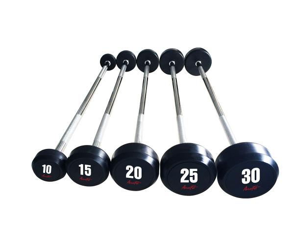 Набор профессиональных прямых обрезиненных штанг AeroFit подходят для интенсивной эксплуатации в фитнес-клубах с большой пропускной способностью.