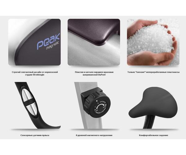 Удобный магнитный велотренажер Oxygen Peak U идеально подойдет для начинающих пользователей. Мягкий ход обеспечивает маховик 6 кг. и высококачественные комплектующие системы нагружения. Комфортную тренировку пользователю ростом до 185 см. и весом до 110 кг обеспечивают 8 положений вертикальной регулировки сидения. Параметры тренировки отображаются на легкочитаемом дисплее компьютера: время, дистанция, скорость, калории, пульс. Комфорт и эффективность тренировок обеспечат датчики пульса на поручнях, 8 положений пошаговой регулировки нагружения и ремешки педалей на липучках.