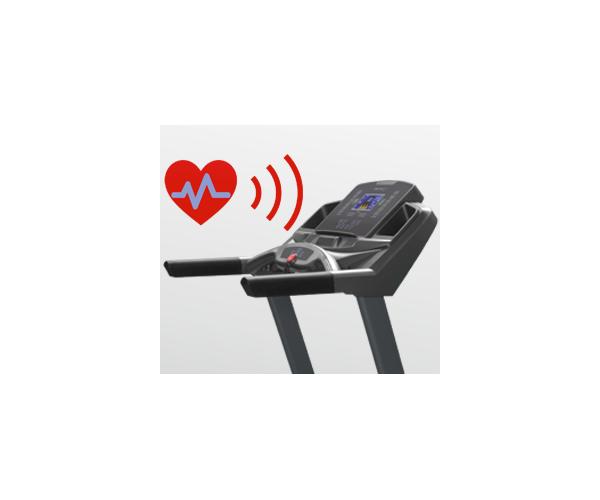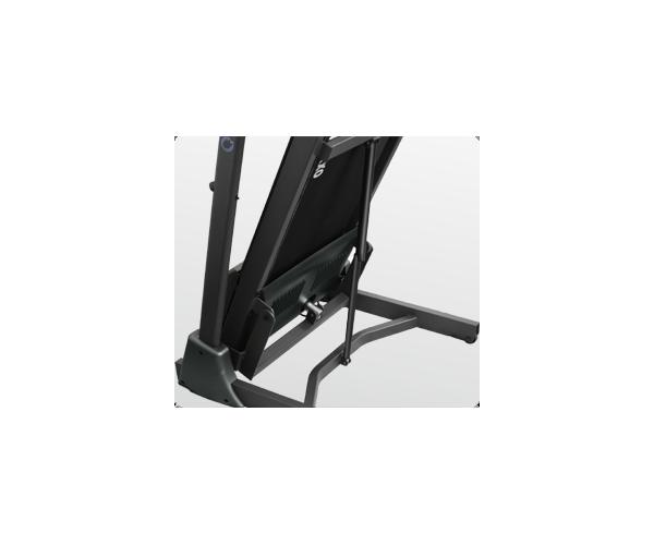 Есть здесь и 2 пульсозависимые программы с предустановленными значениями 65% либо 85% от целевого максимального пульса. Для точного определения пульса и просто комфортной тренировки в компьютер встроен высокоточный беспроводной приемник. К другим особенностям дорожки относятся гидравлическая система складывания easyFOLD™, которая существенно облегчает складывание дорожки, а при раскладывании обеспечивает медленное опускание полотна в последней фазе, гарантируя легкость и безопасность. Мультимедийная компонента представлена динамиками 5 Ватт и входом USB для проигрывания музыки с USB накопителя или смартфона. Перемещение дорожки происходит за счет 2-ух транспортировочных роликов. Выровнять положение тренажера относительно поверхности можно за счет компенсаторов неровностей пола.