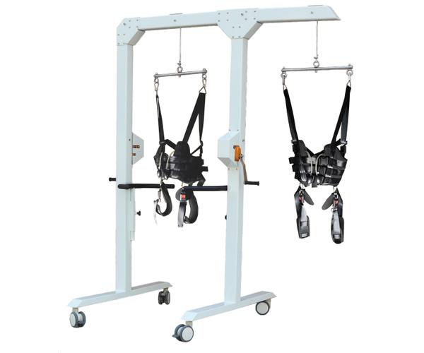 Особенности подвеса AMF 2552: Подвес предназначен для подъема, вертикализации и обучения навыкам ходьбы. Подвес оснащен двумя автономными ручными приводами для разгрузки веса двух пациентов. Оснащен дополнительными регулируемыми по высоте поручнями. В комплекте два инновационных жилета для крепления пациентов. Жилеты имеют многокамерную систему воздушной фиксации, а также регулировочные ремни. Подходят для пациентов весом от 15 до 160 кг. Подвес легко перемещается на транспортировочных роликах. Ролики имеют надежные стопоры. Моментальное отображение разгрузки веса на 2 дисплеях для каждого пользователя