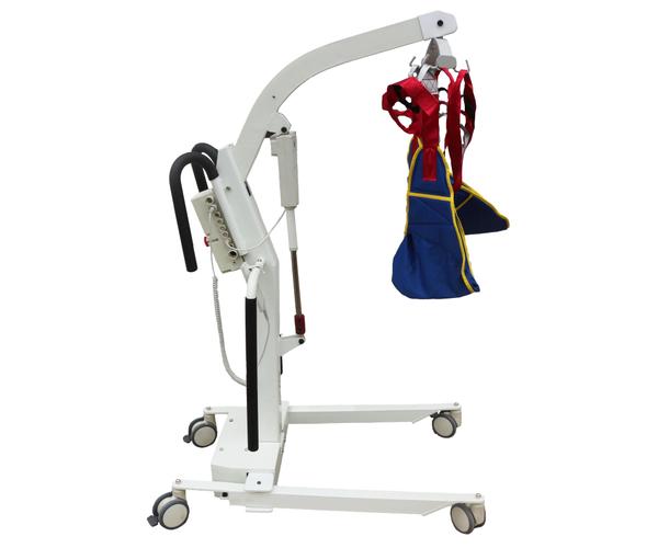 Подвес AMF 2580 имеет изменяемый угол развода опор на электроприводе, который обеспечивает устойчивость подъемника и повышает удобство использования. Развод опор часто необходим при подаче подвеса непосредственно к постели больного, а также при свершении иных процедур. Подъем пациента вверх также осуществляется с помощью электропривода, нажатием кнопки на пульте управления. Процесс подъема и опускания человека плавный и бесшумный. Производителем определен допустимый вес пациента 250 килограммов. Электропривод подъемника осуществляется двумя двигателями, питание происходит от сети. Также конструкция аппарата оснащена емким аккумулятором, питающим оба двигателя на протяжении долгого времени.