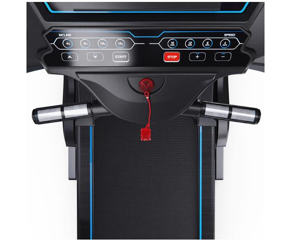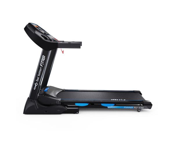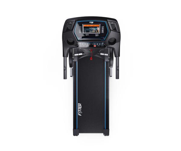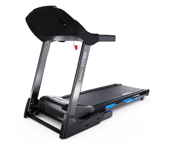 Беговая дорожка Fytter 12X предлагает 80 предустановленных программ, быстрый старт, интервальный режим и возможность создания индивидуального плана тренировки. С помощью сенсорных датчиков на поручнях можно контролировать частоту сердечных сокращений.