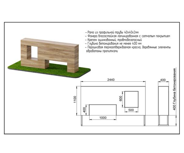• Металлические элементы окрашены порошковой термоотверждаемой краской, деревянные элементы обработаны пропитками