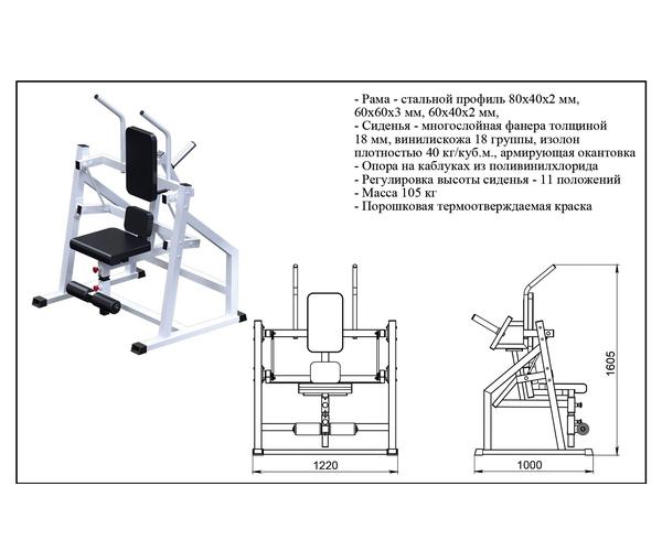 • Конструкция тренажера изготовлена из стального профиля 60х60х3мм, 80х40х2 мм, 60х40х2 мм