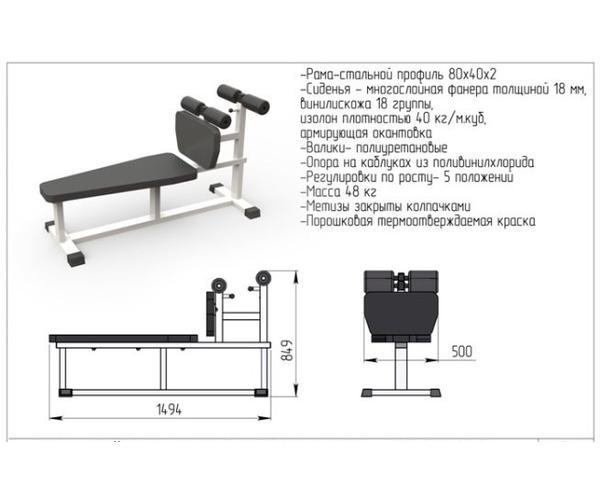 • Габариты тренажера (ДхШхВ) - 1500*500*850мм;