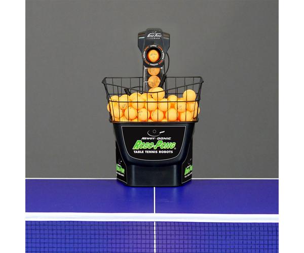 Робот для настольного тенниса NEWGY ROBO-PONG  является недорогим вариантом для тренировки игры в теннис и техники отбивания мчей. Сетку для улавливания мячей вы можете купить отдельно. Загрузка мячей осуществляется вручную. Корзина этого робота вмещает 120 мячей, которых хватает для тренировки в настольный теннис в течение нескольких минут. Для достижения различных углов выброса мячей вы можете менять расположение робота на столе или за столом в корзине Robo-Caddy.