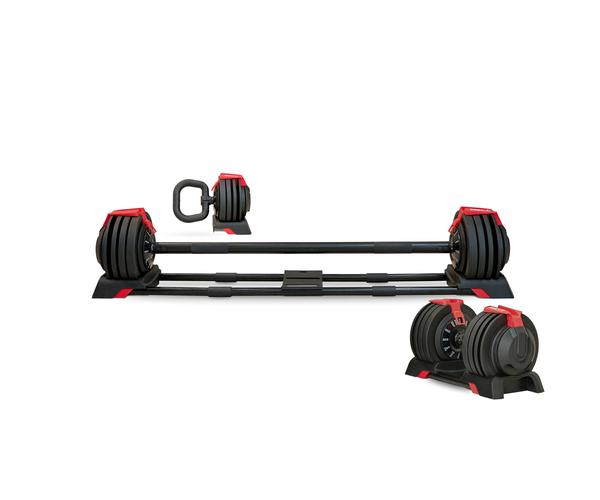 Предусмотрено 12 весовых вариаций (как в левой, так и в правой руке) для штанги: 4/6/8/10/11,5/14/15/17/18,5/20/22/24 кг.
