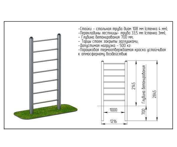 • Перекладины: труба 33,5 мм, крепится к стойкам в антивандальный стакан с защитой от выкручивания