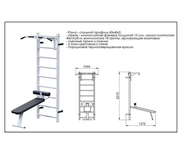 Купить Шведскую стенку с навесным оборудованием L073 с доставкой можно в интернет-магазине T-Sport66.ru