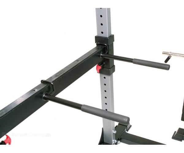 Силовая рама Body Craft F430 - тренажер для комплексной тренировки, направленной на проработку различных групп мышц, в частности мышц плечевого пояса, спины и ног. рама имеет прочную конструкцию, легко регулируется фиксаторами на пружинах с ограничителями. Благодаря наличию держателей для страховки, тренировка будет безопасной. Имеет перекладину для подтягивания. Масса стека 90 кг.