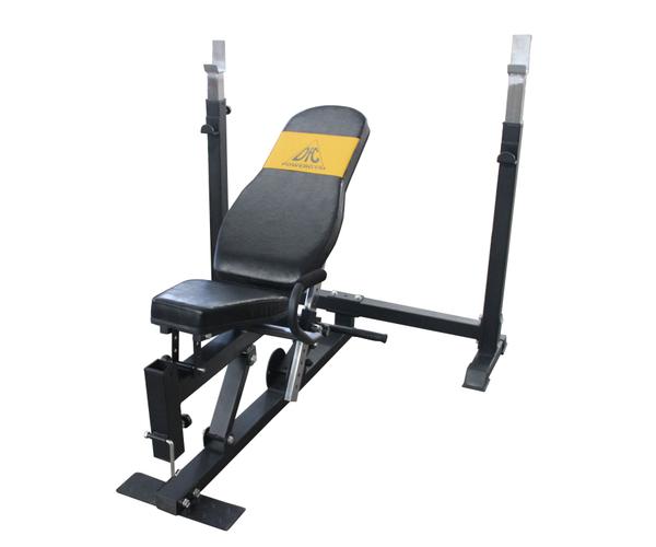 Новый силовой тренажер со свободными весами от DFC POWERGYM BN014. В комплекте универсальная скамья с регулировкой угла наклона спинки и сиденья. На скамье имеются удобные ручки. Стойка и скамья для тренировок различных групп мышц изготовлена из высокопрочной стали. Мощная рама из стального профиля 50х70 мм и толщиной 2 мм. Стойки регулируются по высоте и имеют страховые крючки.