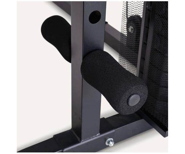Регулировка. Силовую скамью можно отрегулировать на 3 уровня по углу наклона, парта для бицепса регулируется по высоте на 5 уровней. Валики, которые используются для выполнения упражнений на парте для бицепса и с грифом, регулируются на 3 уровня по высоте. Поручни для поддержки во время упражнений на пресс можно регулировать по высоте на 5 уровней. Все эти регулировки позволяют максимально комфортно настроить оборудование под свои нужды.