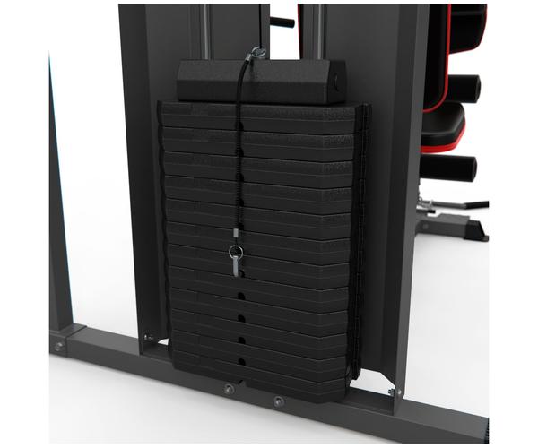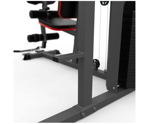 Максимальный вес пользователя до 120 кг. Профиль основной трубы 70 х 50 х 1,5 мм. 11 весовых пластин в комплекте. Спинка регулируется по горизонтали на 3 уровня. Вес стека 72 кг, 1 блок – 6 кг.