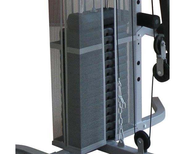 Ролики на подшипниках обеспечивают плавное движение. Весовой стек массой 68 кг имеет защитный кожух для безопасности пользователя.