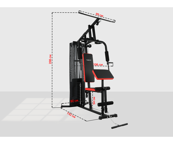 Отягощение осуществляется грузовыми блоками общим весом 70 кг. Максимальный вес пользователя составляет 140 кг.